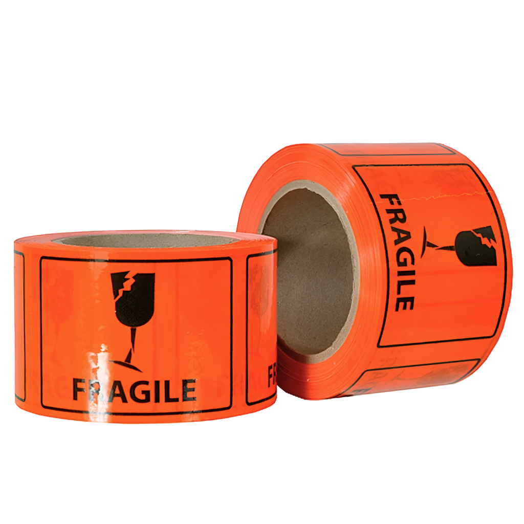 This product is ideal for warning labels and ensuring safe delivery of fragile items. Its size, colour, and adhesive properties ensure high visibility and secure attachment throughout shipping.